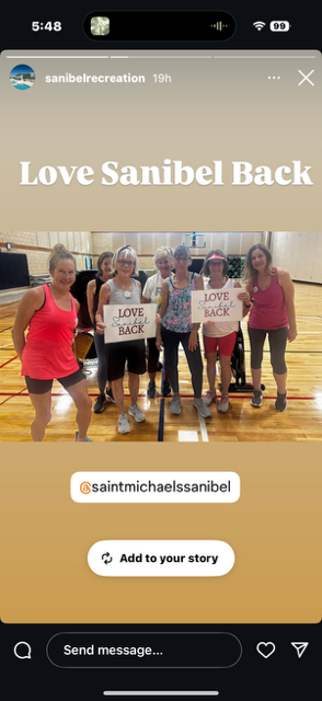 Linda Linsmayer, a member of St. Michael’s Community Engagement Team, shares her thoughts on how the words Love Sanibel Back came to her:
